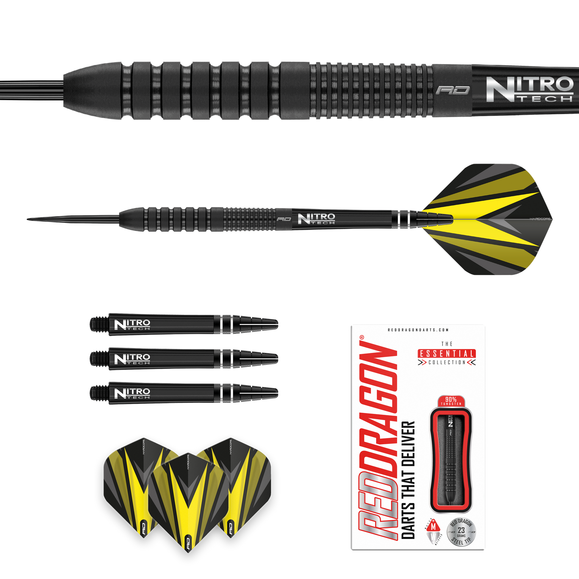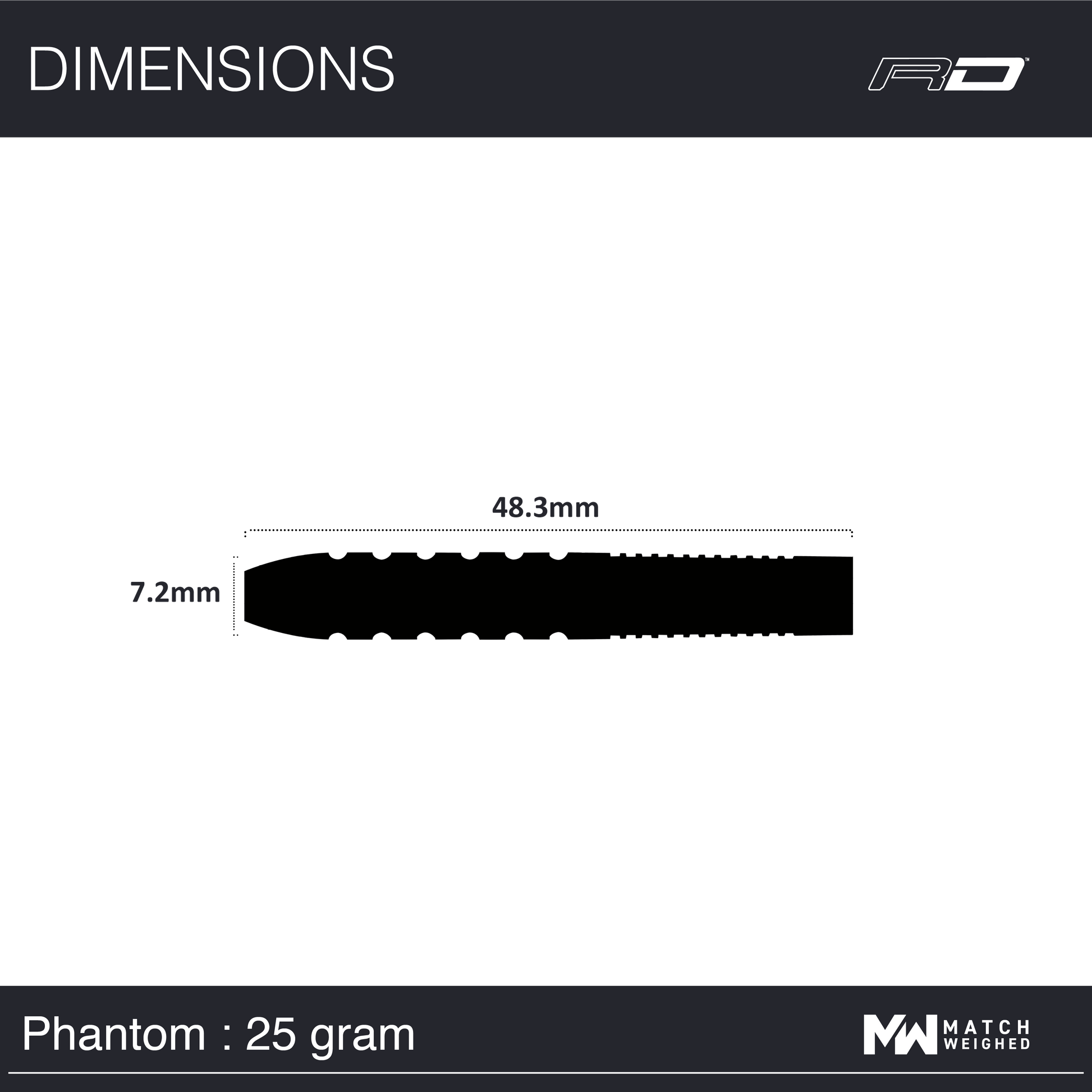 The Classic profiled dart was made wildly famous by the legends of Darts on TV in the 1980's and its popularity still thrives and dominates today. Born out of the technology of the time, parallel darts with rings were very much the epitome of darts design. However, With the advent of CAD / CAM design and highly precise machining technology Phantoms design has moved beyond the single grip option, into a modern masterpiece. Upon close inspection the Phantom features Ring Grip, but Ring Grip that has been contoured at the edges to feel more sculptured in the players hand. The rear ring grip is pitched with narrow more vertical profiled rings to offer greater traction helping the dart get pushed to the board, never pulled. Boasting a stealth like black finishing Phantom darts are made for the ultimate confidence through traction control, built on decades of Red dragons unique development to provide you with peak parallel performance.